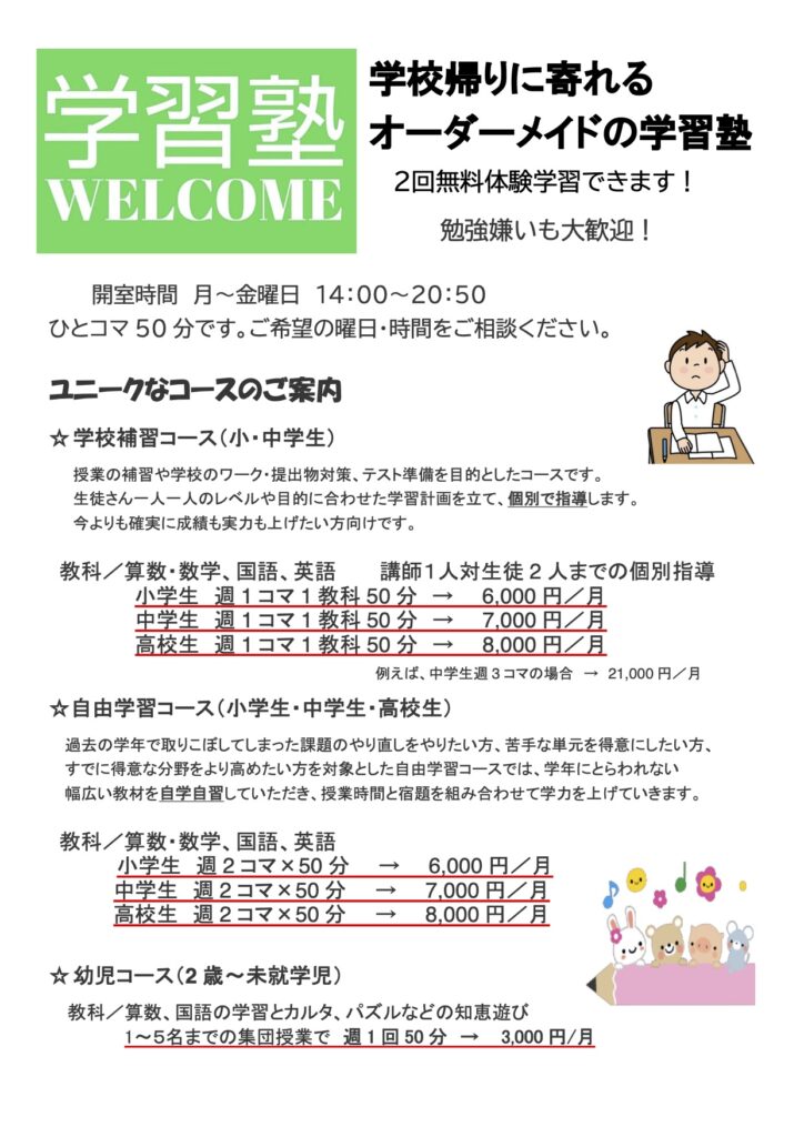 無料体験学習も可能なのでお気軽にお問い合わせ下さい。