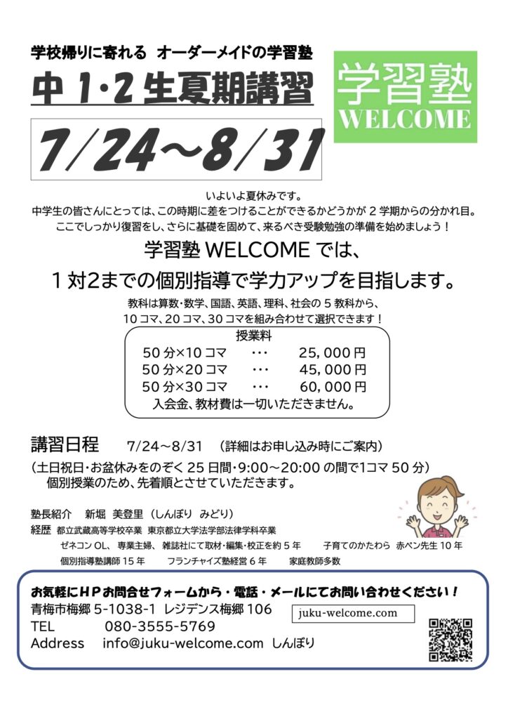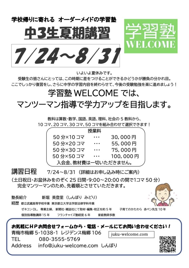 ここで中学の学習内容を終わらせ、しっかり復習をする事で、今後の受験勉強を楽に進めましょう。