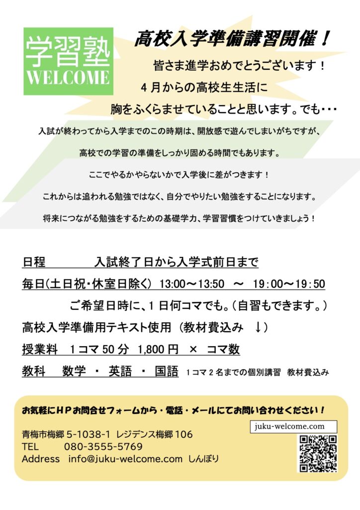 でも・・・ 入試が終わってから入学までのこの時期は、開放感で遊んでしまいがちですが、高校での学習の準備をしっかり固める時間でもあります。